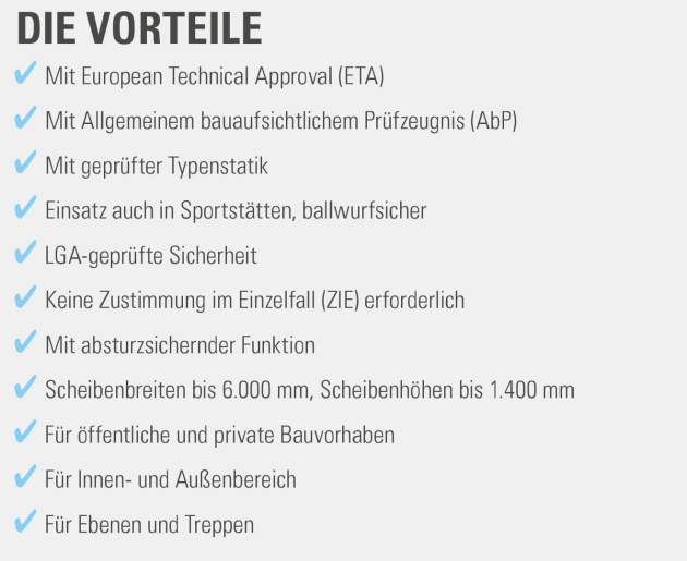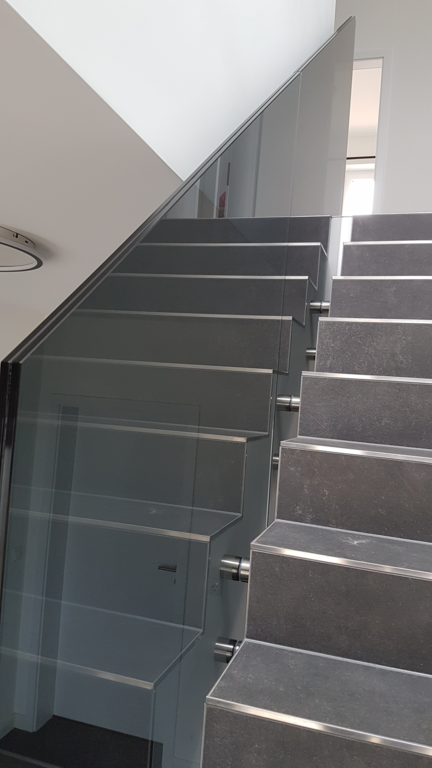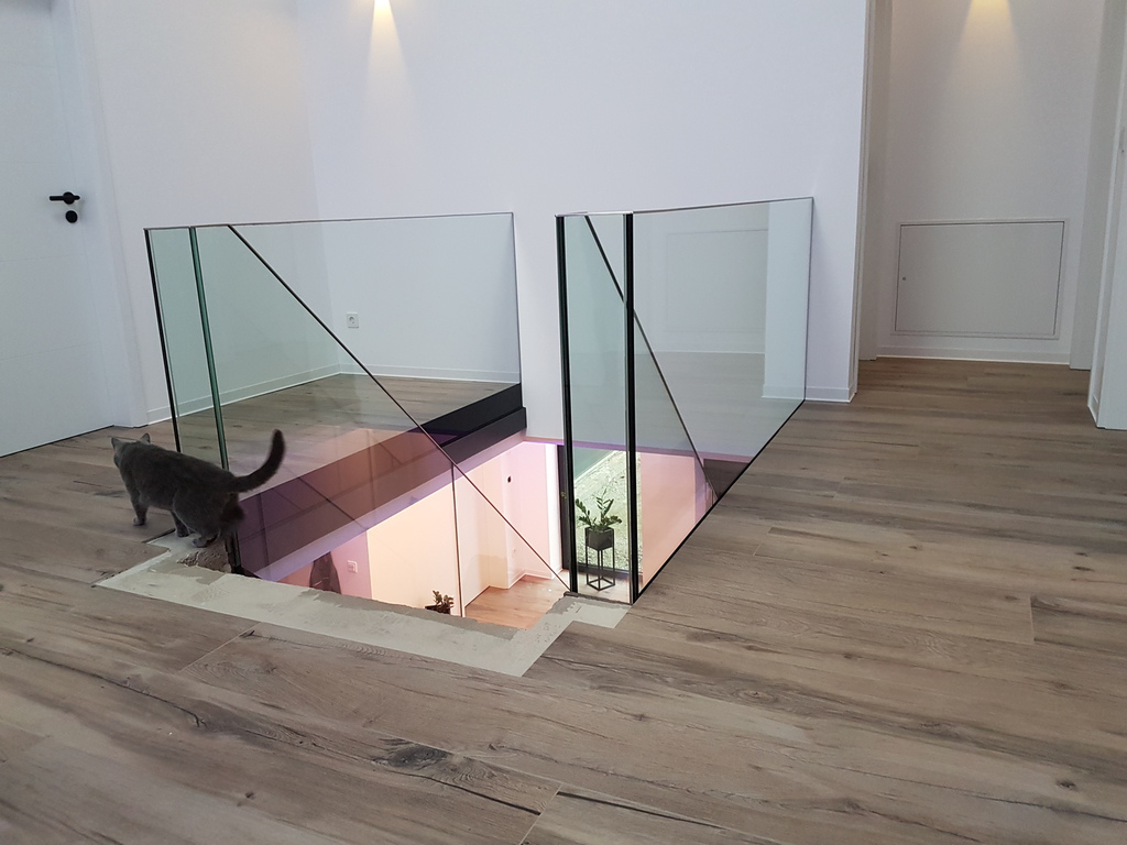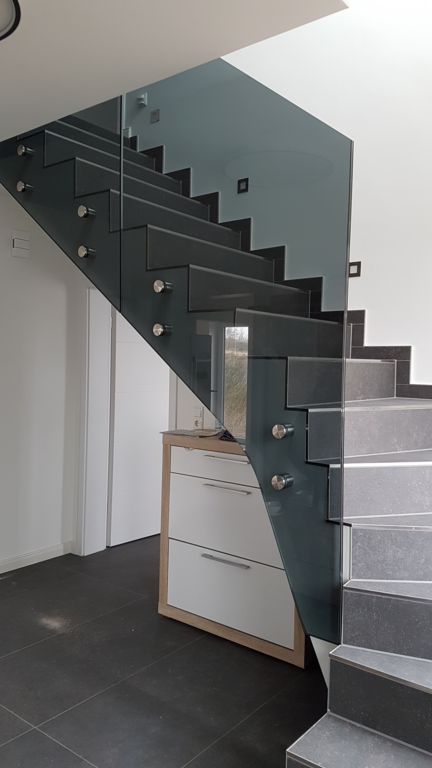 Ähnlich wie bei Brüstungen, müssen Glasgeländer bruchfest sein und können im Innen- oder Außenbereich eingesetzt werden. Treppengeländer aus Glas zeichnen sich durch ein Höchstmaß an Sicherheit aus. Rund geschliffene Kanten sorgen für einen komfortablen Griff. Gleichzeitig verleihen Sie jeder Treppe ein persönliches Profil.